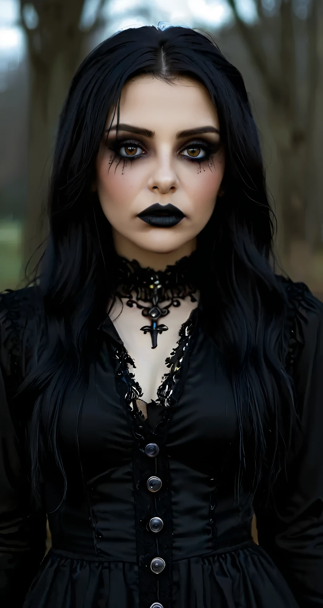 Arafed woman with black makeup and black dress posing for a picture