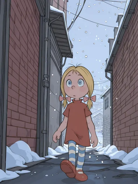 4nn1e, 1girl, solo, blue eyes, blonde hair, twintails, hair bow, red dress,