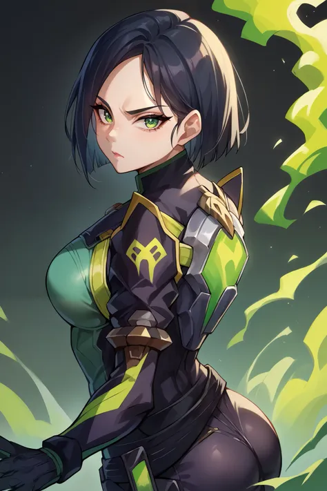 valVipr, bob cut, green eyes, black hair