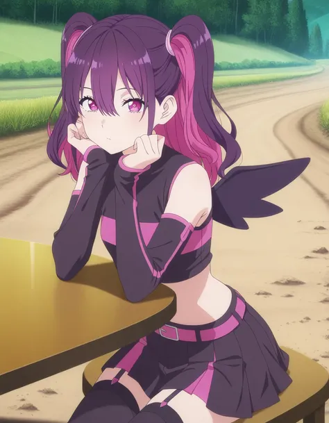 mikari tachibana, brown hair, twintails, hair ribbon, two side up, pink eyes, mature female, small breasts, anime screencapmikari tachibana, long hair, bangs, hair between eyes, twintails, purple eyes, pink hair, purple hair, multicolored hair, two-tone hair, two side up, mature female, small breasts, anime screencapskirt, bow, jacket, pleated skirt, blazer, grey skirt, black blazer, sweater vest, collared shirt,skirt, shirt, thighhighs, pleated skirt, detached sleeves, wings, sleeveless, midriff, belt, black thighhighs, miniskirt, black skirt, zettai ryouiki, crop top, two side up, garter straps, black sleeves, pink belt