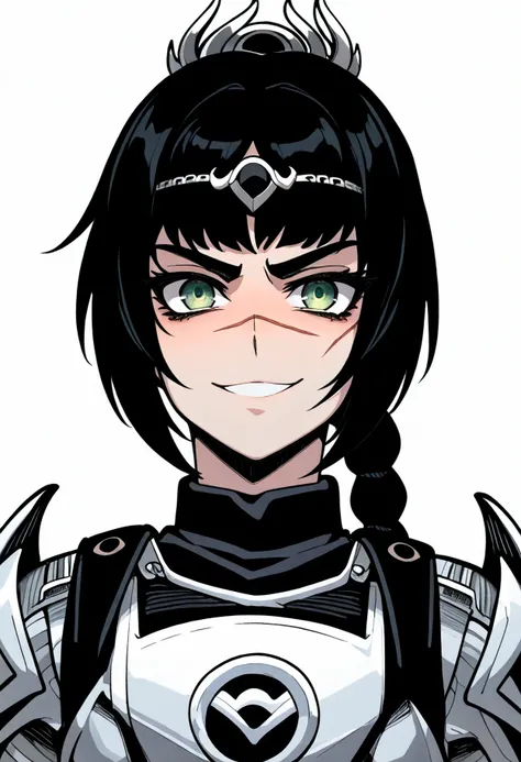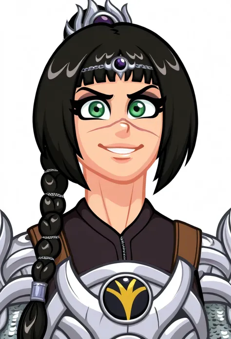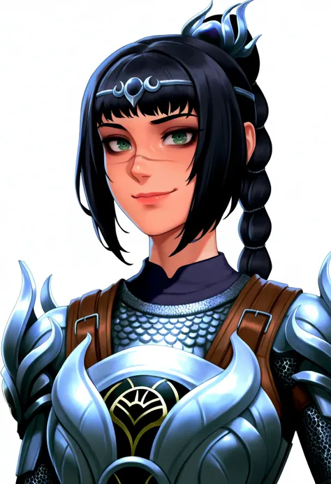 1girl, shadowheart, black hair, circlet, long hair, braided ponytail, braid, green eyes, elf, pointy ears, armor1girl, selunite, white hair, long hair, braided ponytail, braid, green eyes, elf, pointy ears, armor
