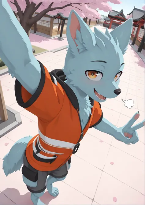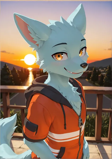suguru, furry, furry male, light blue fur, orange hoodie, gold eyes,suguru