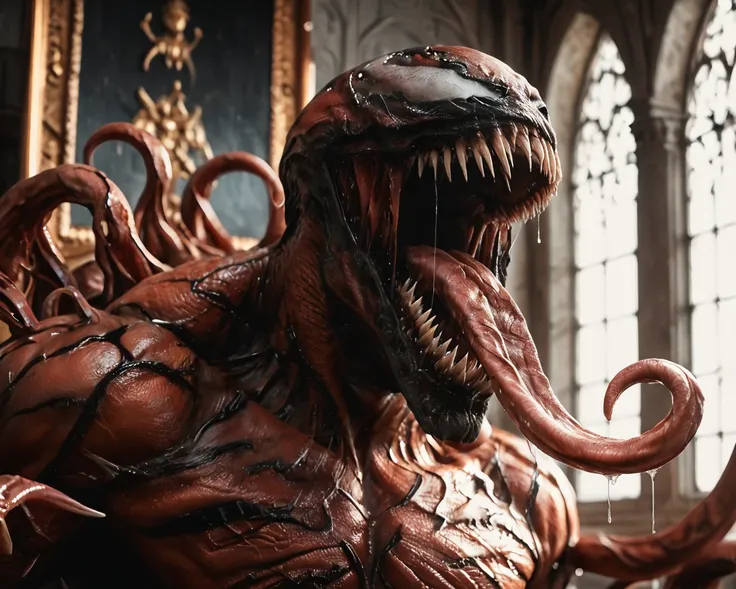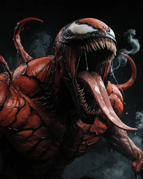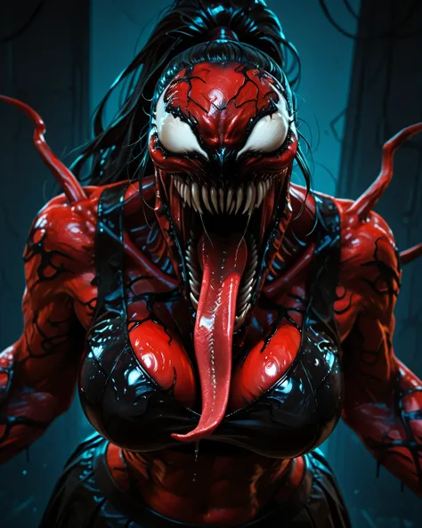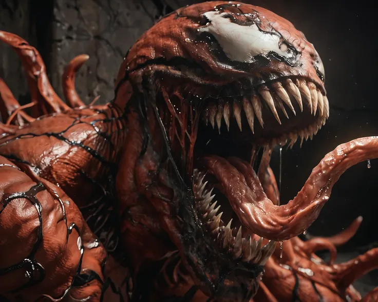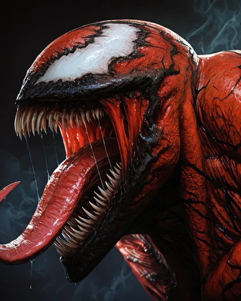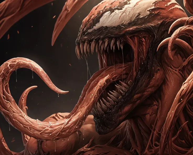 Ca1nag3monster, sharp teeth, claws, no humans, tongue, muscular, saliva, long tongue, tongue out, tentacles, white eyes, red skin,