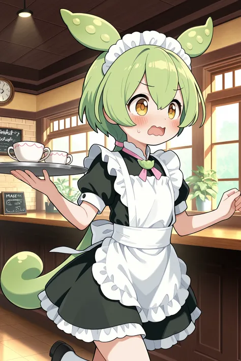 zundamon, yellow eyes, ponytail,blush stickerswhite shirt, puffy short sleeves, green shorts, suspender shorts, puffy shorts, green shoes, ribbon,