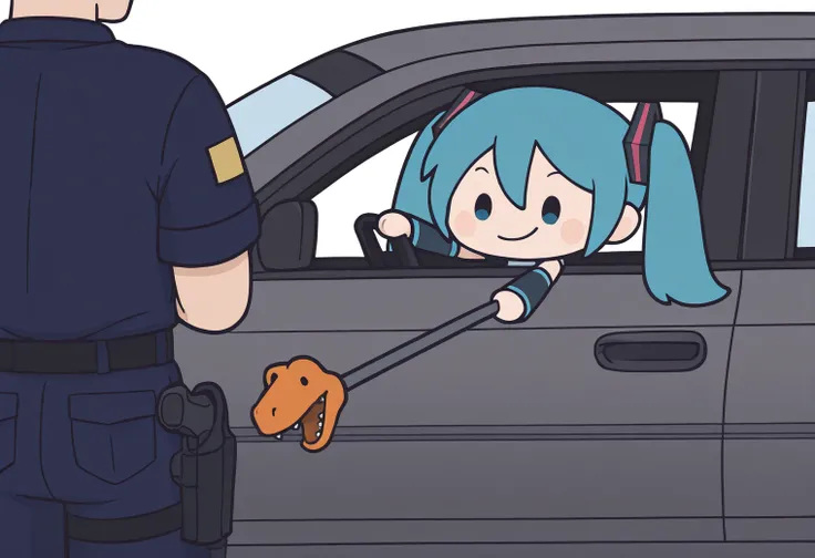 mikus-concept, chibi, big eyes, small body proportions, standing, front view, full body, minimalist design, solo