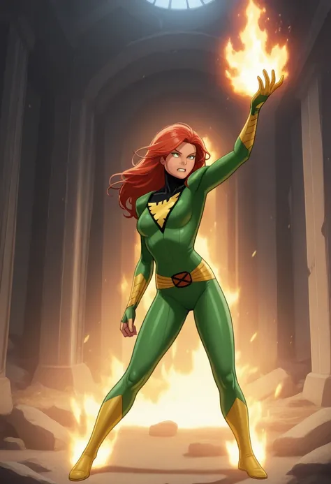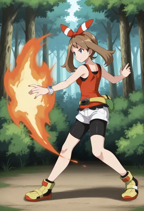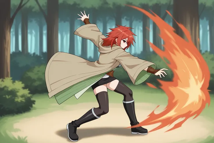 orochinagi, outstretched arms, dynamic pose, fire, pyrokinesis