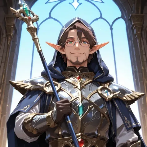 headband, blue bodysuit, gloves, harness, belt pouch, mature male