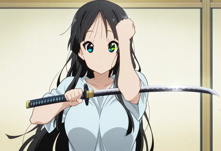 mio akiyama, akiyama mio, long hair, bangs, black hair, black eyes, hime cut, mature female, medium breasts, anime screencapsakuragaoka high school uniform, school uniform, uniform, blazer, shirt, white shirt, collared shirt, skirt, pleated skirt,