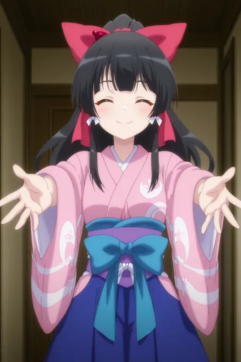 <lora:incoming-hug-ponyxl-lora-nochekaiser:1>, incoming hug, looking at viewer, reaching, reacing towards viewer, outstretched arms,