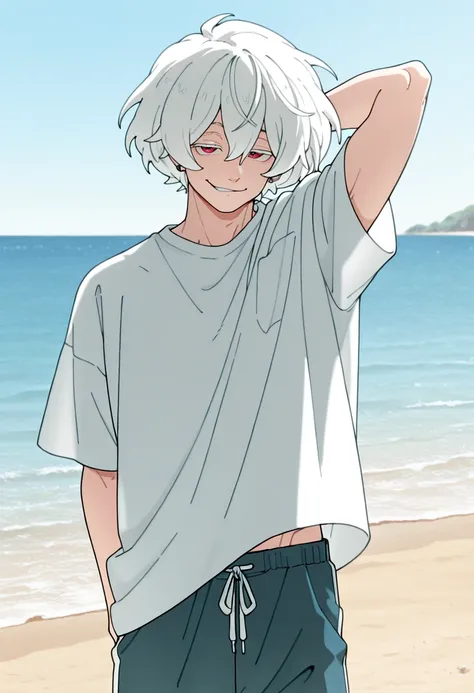 B4kut3nM4sh1ro, 1boy, male focus, white hair, hair between eyes, red eyes, short hair, colored eyelashes