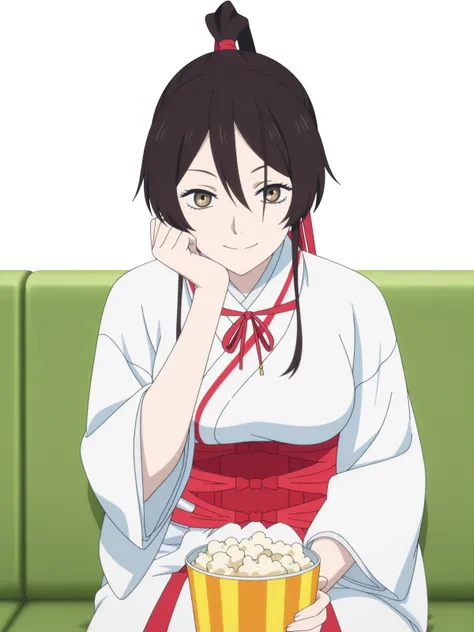 sagiri yamada asaemon, long hair, black hair, ponytail, high ponytail, brown eyes, mature female, medium breasts, anime screencapjapanese clothes, kimono, hakama,