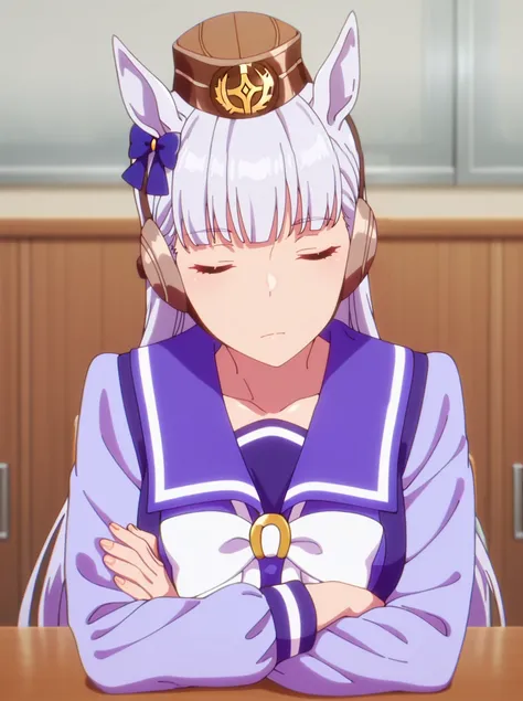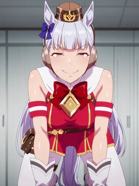 horse ears, long hair, animal ears, horse girl, 1girl, solo, bangs,goldshiptracenuniform, long sleeves, pleated skirtgoldshiptraining long sleevesgoldshipracing, tail, horse tail, gloves, white pantyhose, white boots
