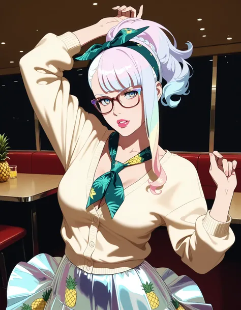 CPELucy, 1girl, short hair, White hair, multicolored hair, multicolored eyes, blue eyes, red Eyeliner, red lipstick, cyborg