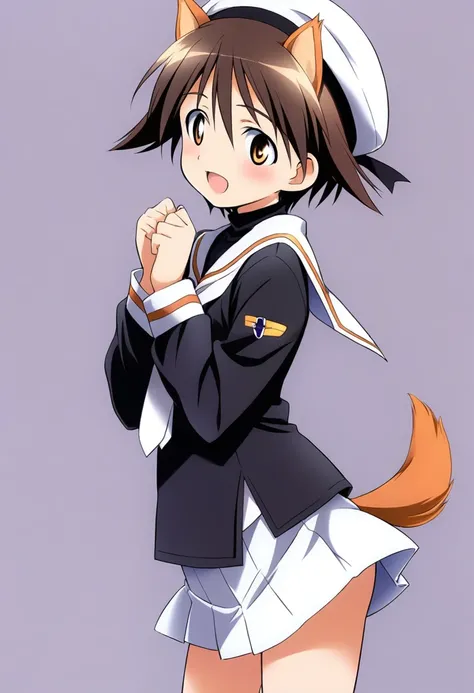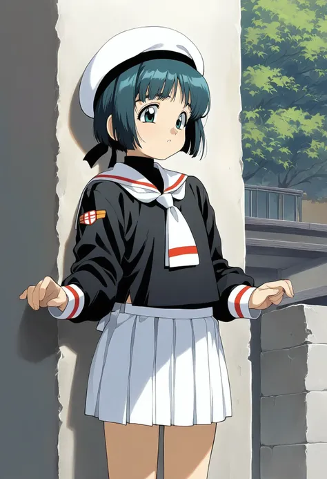 tomoeda elementary school uniform, black serafuku, puffy long sleeves, white sailor collar, white necktie, white skirt, untucked shirt, cosplay,white beret,