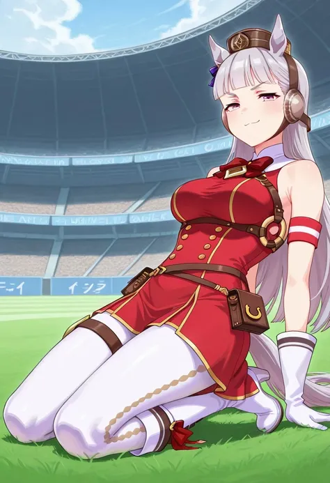 d1ngd0ng_pose, knee on ground, leaning back, looking at the viewer,full body,