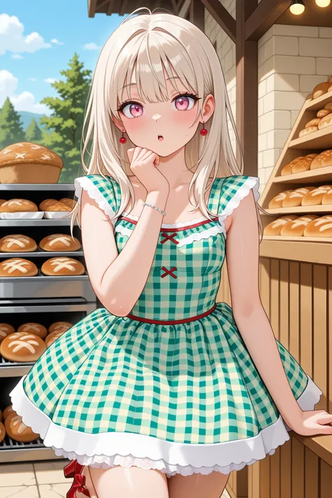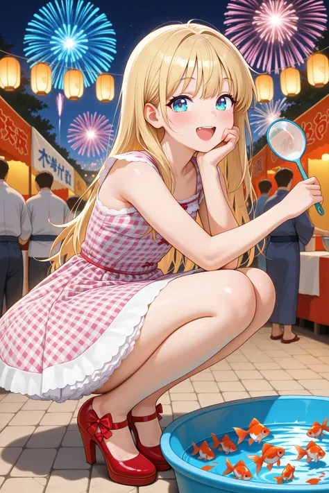 cuteplaid_dress,petticoat, short dress,plaid dress,sleeveless dress, lace-trimmed dress,red bow,red footwear,high heels,footwear bow,
