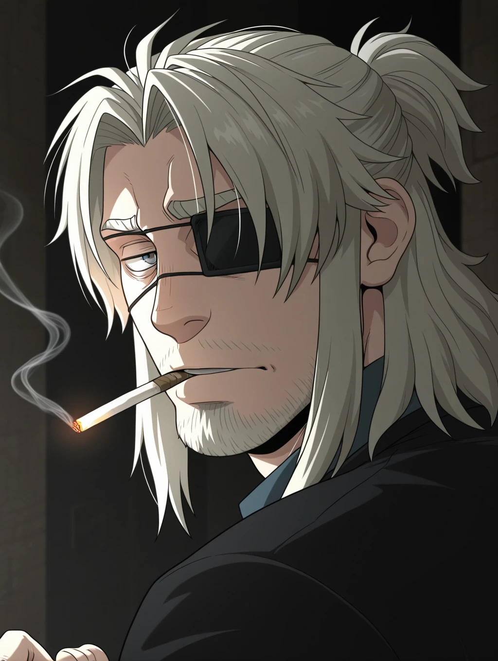 Worick Arcangelo,grey eyes, eyepatch,beard, acial hair,Blonde hair,