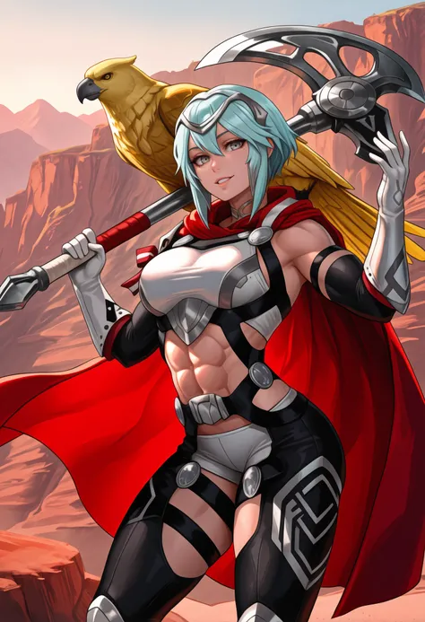 grey eyes, Aqua hair, short hair, hair between eyes, medium breasts, toned, (mole under eye:0.9)Silver armor, silver headpiece, silver choker, ribbons, red cloak, black harness, black elbow gloves, arm strap, white gloves, white crop top, midriff, belt buckle, white underwear, black thighhighs, thigh cutout, thigh strap, toeless legwear, black sandalssilver headpiece, silver choker, bare shoulders, japanese clothes, sleeveless shirt, cleavage, white cropped shirt, red trim shirt, gold armlet, bracer, gold belt, red pants, harem pants, leg cutout, ribbonsSilver headpiece, red cape, single bare shoulder, bare arm, black chest sarashi, white kimono, hadanugi dousa, short sleeve, black gloves, grey sash, thigh strap, black thighhighshigh ponytail, multicolored ponytail, red ponytail, white ponytail, winged helmet, scale helmet, red cape, feather collar, silver pauldrons, metal gorget, black harness, harness between breasts, covered collarbone, white shirt, sleeveless shirt, halter shirt, biceps, black gloves, silver gauntlets, midriff, navel, white loincloth, armored skirt, leather skirt, black thigh strap, armored boots, silver knee boots, black sandals