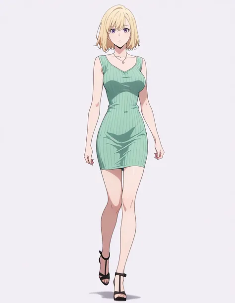 mai_sexy_green_dress,ribbed_dress,short_dress,green_dress,necklace,strappy_heels