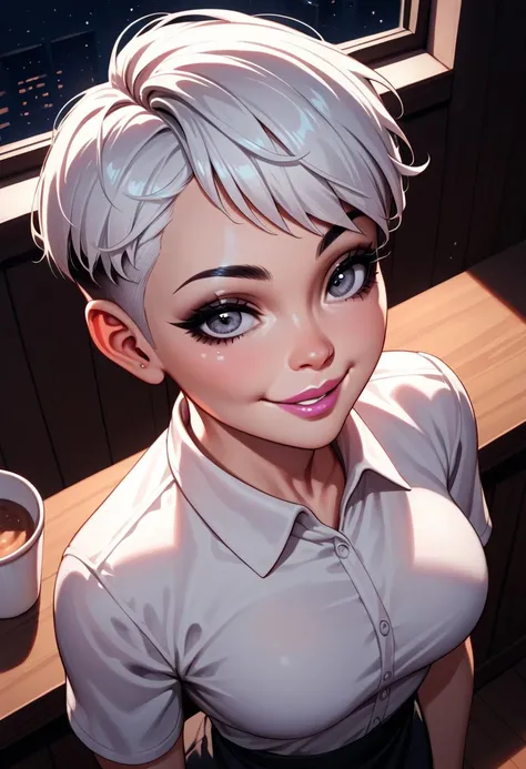 1girl, MiaS-IL, white hair, short hair, pixie cut hair, gray eyes, sexy body