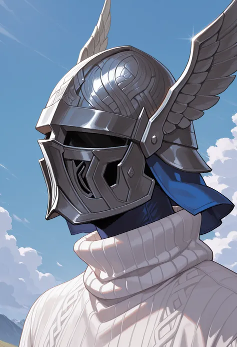 wld, winged helmet, helm, pauldrons, shoulder armor, armor, full armor, cape, gauntlets, brown belt