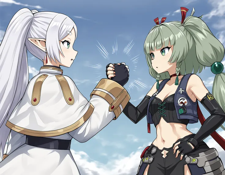 epic handshake \(meme\)looking at anotheremphasis linesupper bodycowboy shothand up