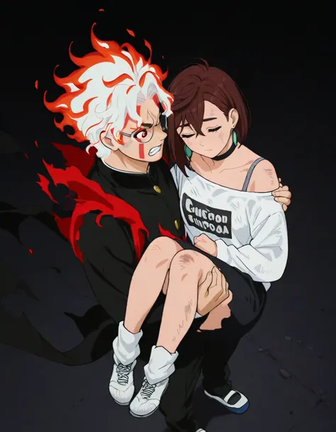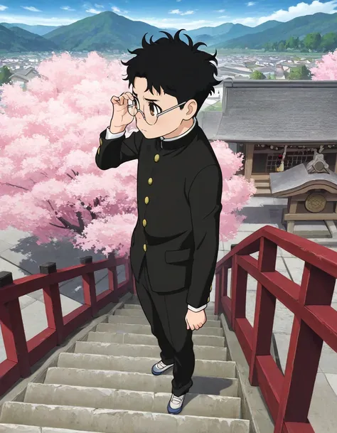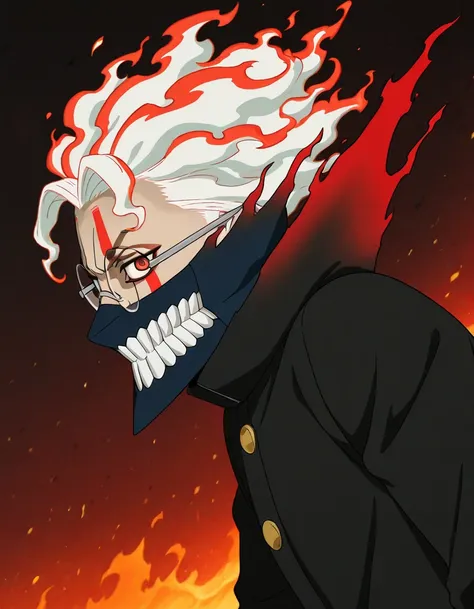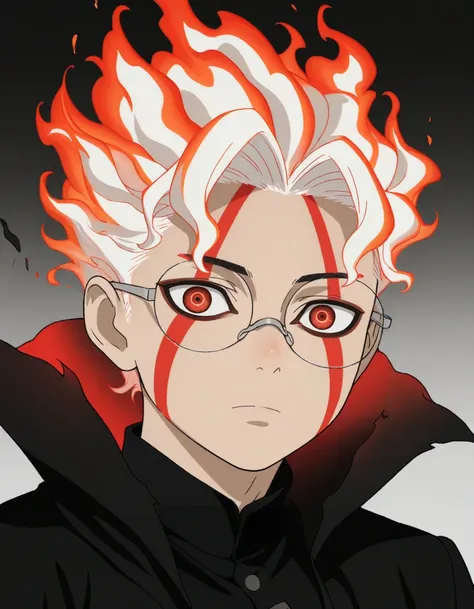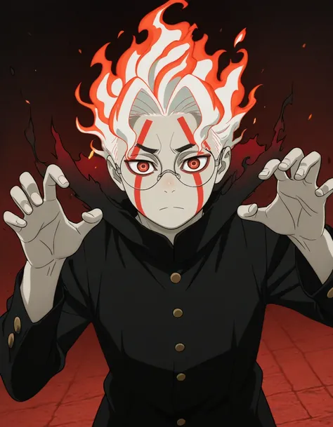 <lora:ken_takakura-dandadan_s1-ixl-anime-soralz:1>, ken takakura (dandadan), short hair, bowl cut, black hair, round eyewear, brown eyes<lora:ken_takakura-dandadan_s1-ixl-anime-soralz:1>, ken takakura (dandadan), short hair, messy hair, black hair, round eyewear, brown eyesopaque glasses, no eyes<lora:ken_takakura-dandadan_s1-ixl-anime-soralz:1>, ken takakura (dandadan), transformation, white hair, red hair, fiery hair, multicolored hair, round eyewear, red eyes, facial markjaw mask, teethschool uniform, gakuran, long sleeves, black pants, grey footwear