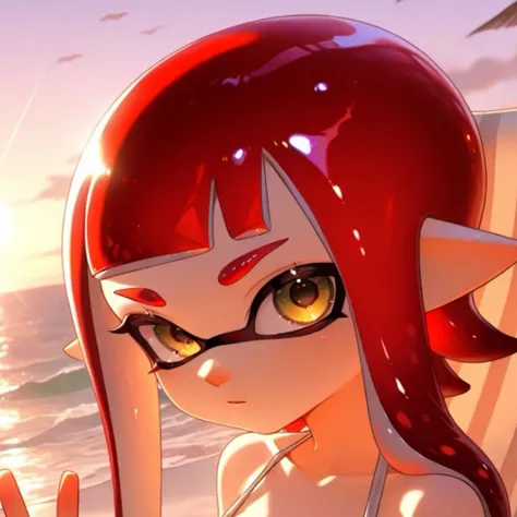 disassembly_drone, robot, hairband, glowing, glowing eyes, solo