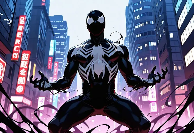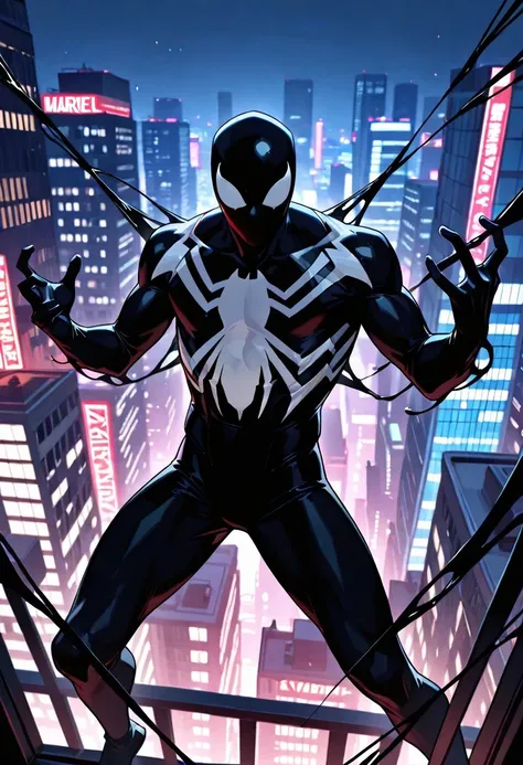 blacksuitspider_2017/(marvel)XL, symbiote, blacksuit, 1boy, solo, muscular, mask, bodysuit, spiderprint,
