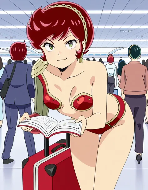benten, short hair, green eyes, red hair, hairband, mature female, small breasts, anime screencaparmor, bikini armor,