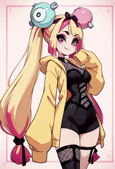 Gaghiel (diives), nintendo, pokemon, pokemon species, gen 3 pokemon, mawile, 1girl, anthropomorphization, bangs, black gloves, blunt bangs, bow, black hair, gloves, hair bow, hair ornament, long hair, looking at viewer, neck ribbon, neckwear, pink bow, ponytail, red eyes, red neckwear, red ribbon, ribbon, shirt, short hair, tied hair, clothing, collared shirt,