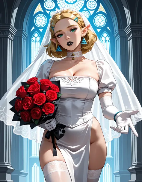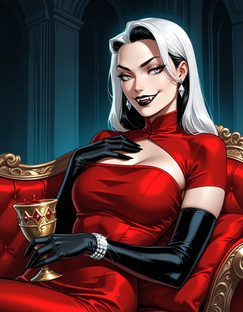 halterneck, red dress, sleeveless, (ruched satin), vintage hair, curly hair, collarbone