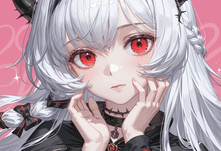 braid,hair intakes,long hair,red eyes,white hair,diyitaopulixila,diyipuli black ankle boots,diyipuli black belt,diyipuli black capelet,diyipuli choker,diyipuli black taut long dress,diyipuli black hairband,diyipuli black boots,diyipuli brown pantyhose,diyipuli detached sleeves,diyipuli balck and red hair ribbon,