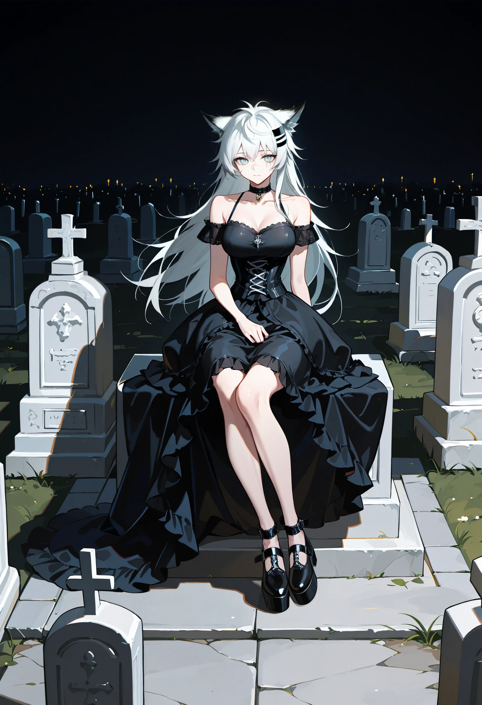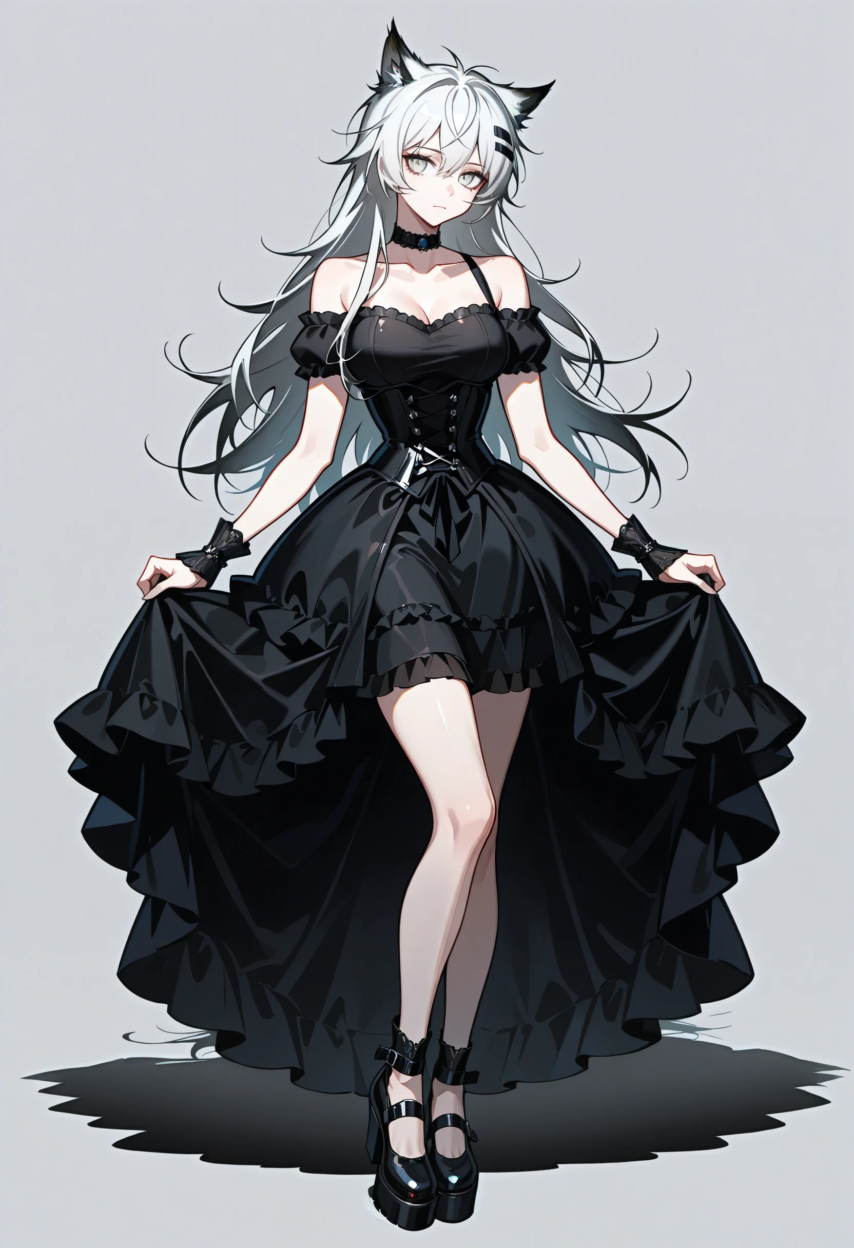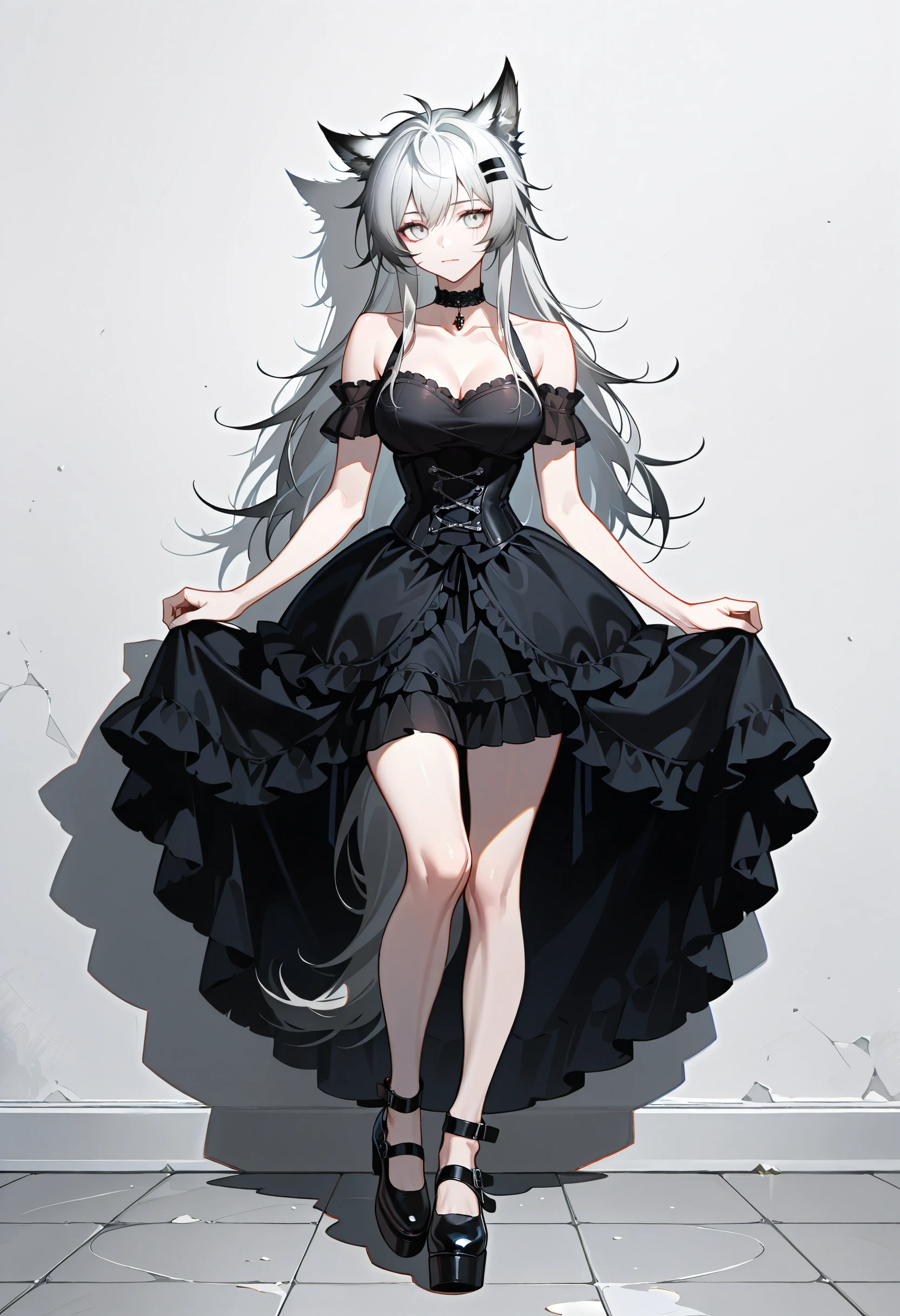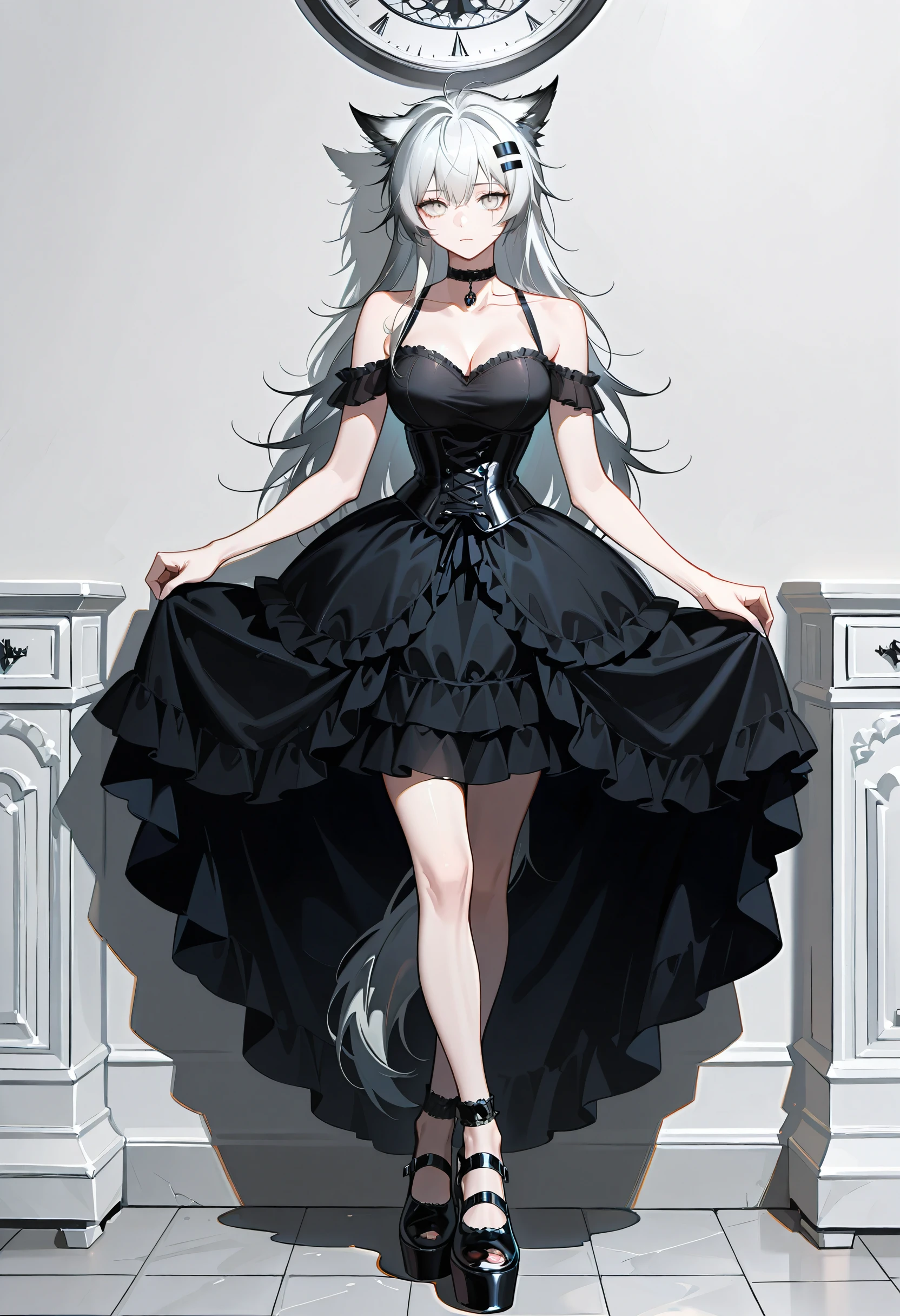 choker, bare shoulders, frills