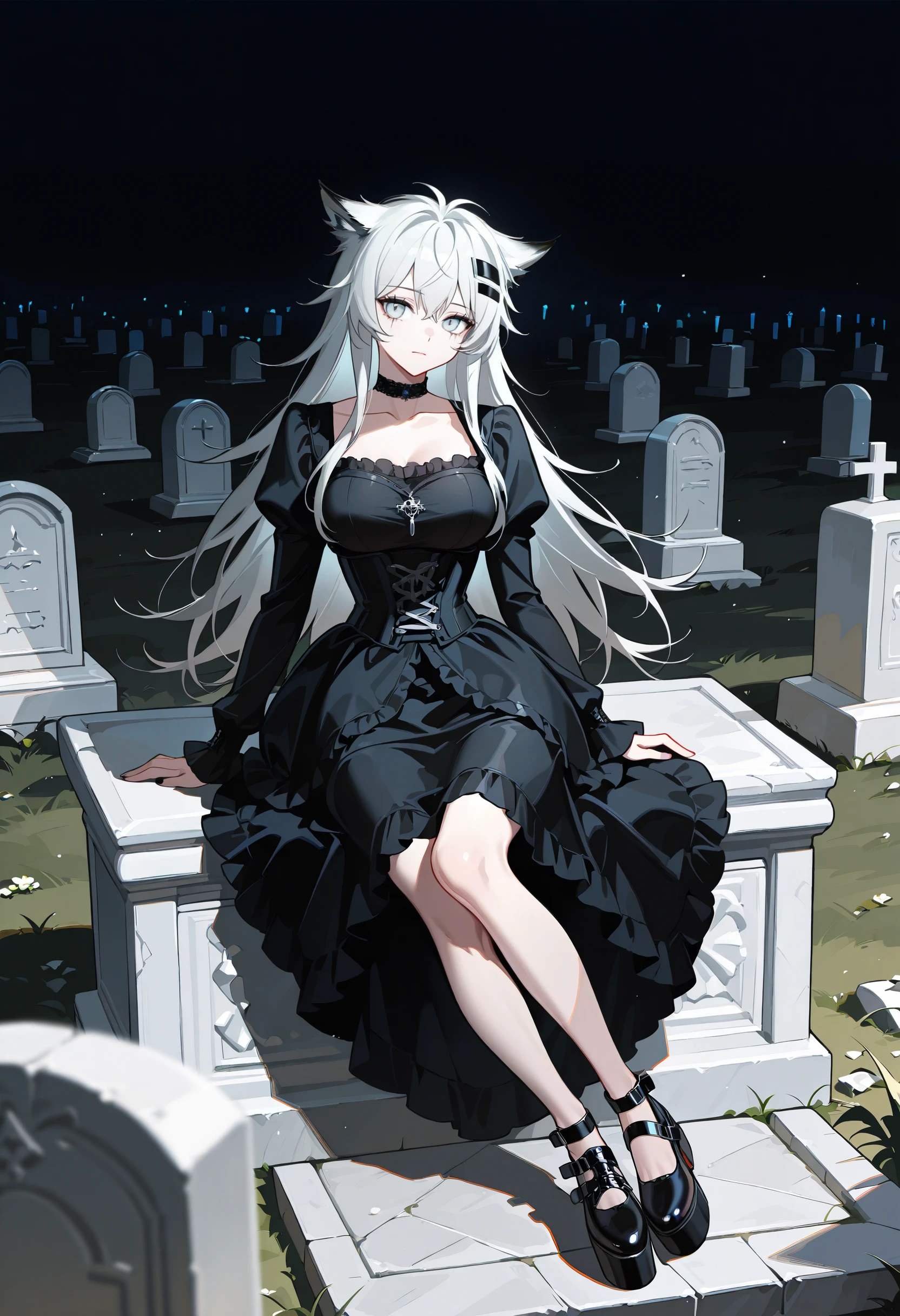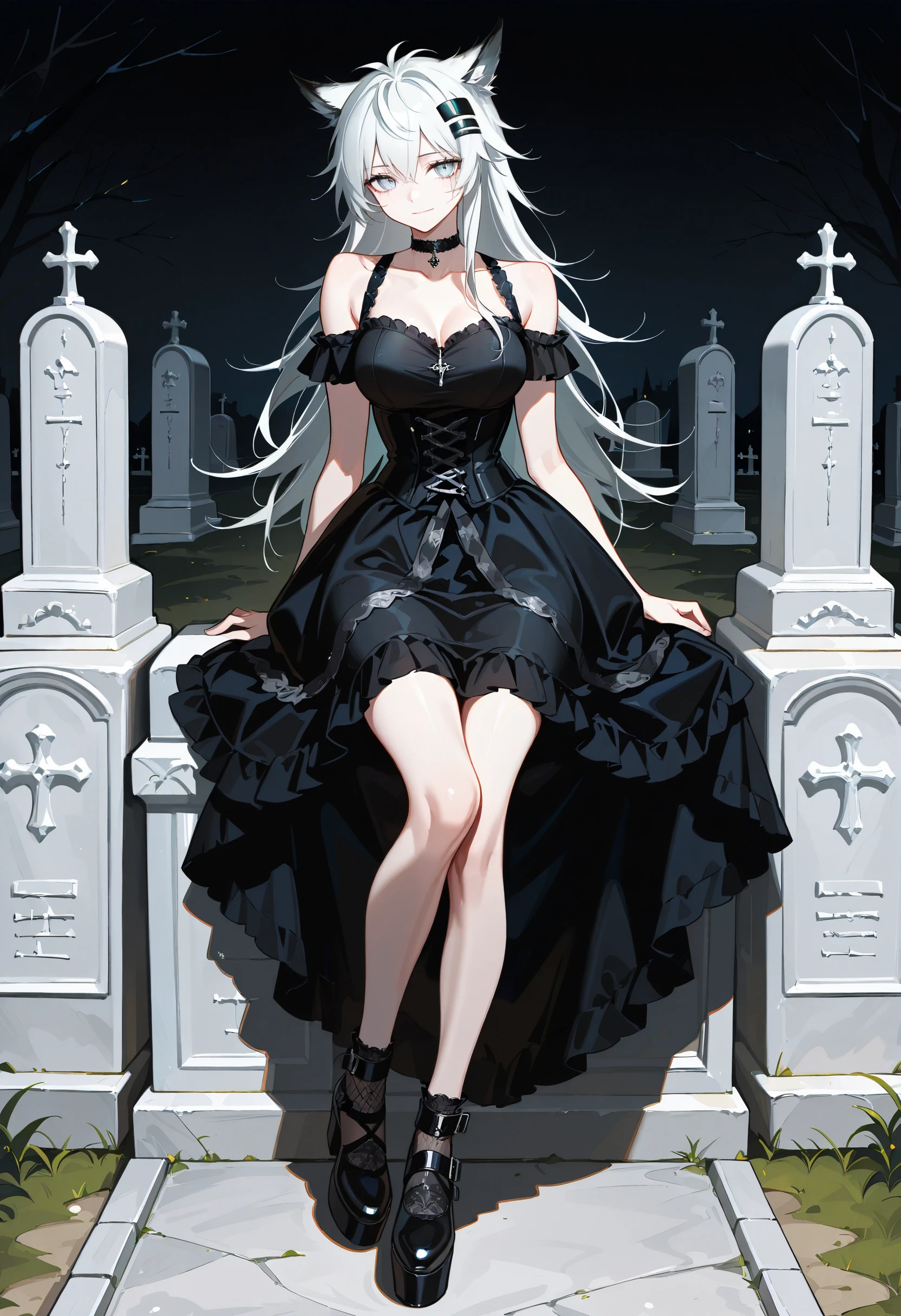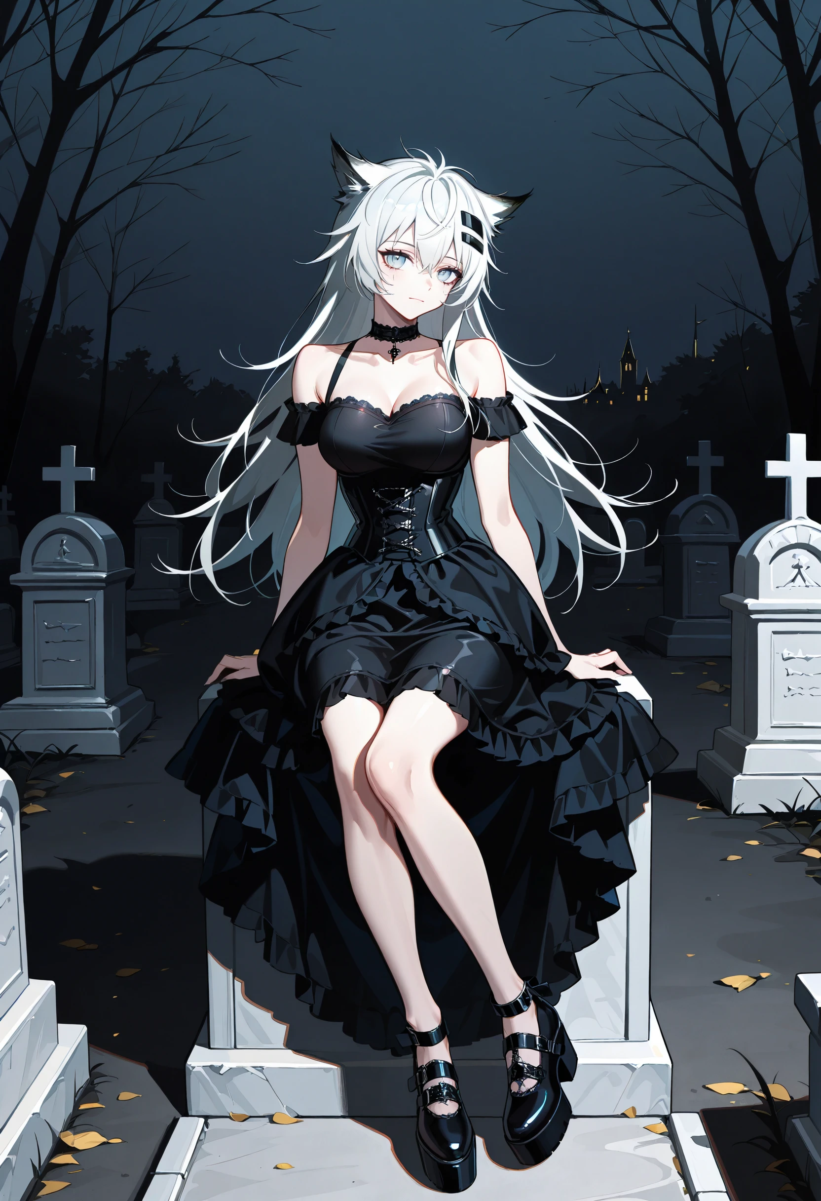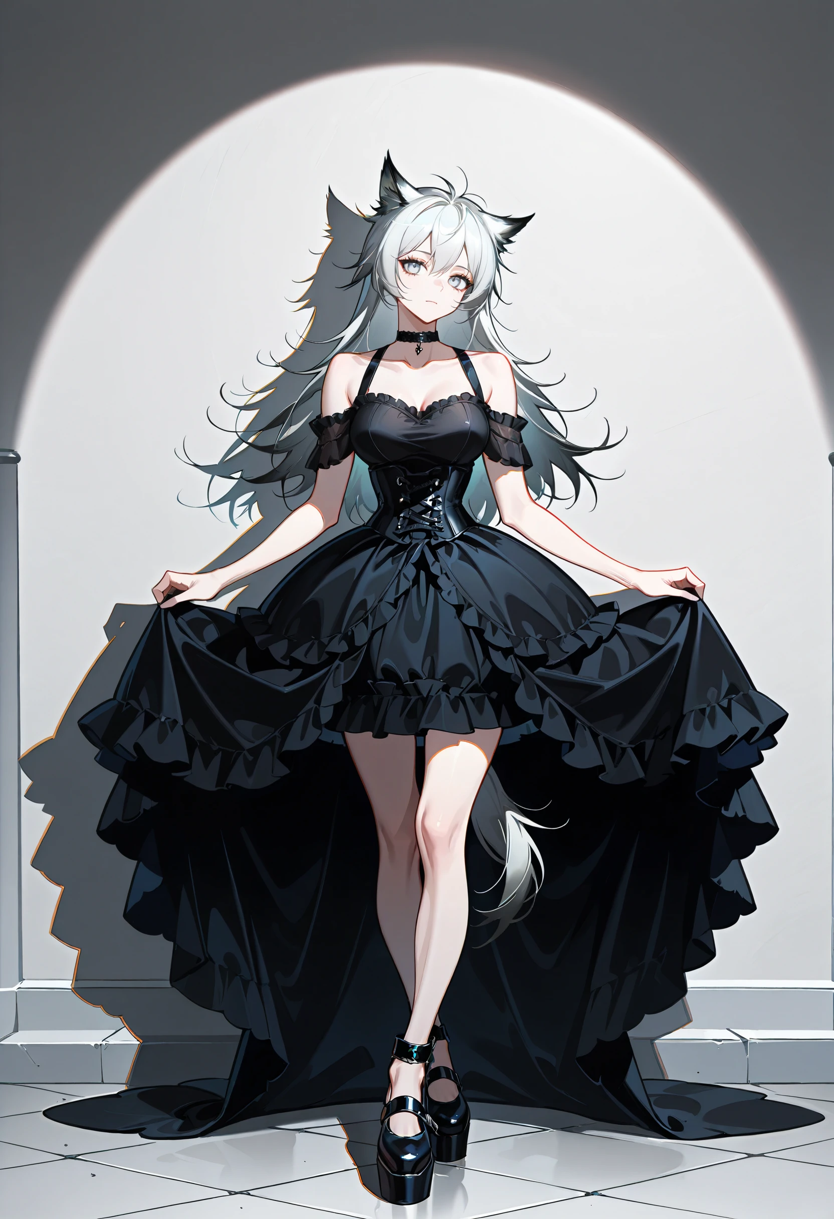 choker, bare shoulders, frills