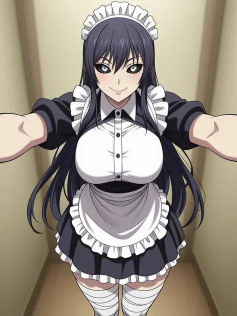 karlaillu, black sclera,school uniform, black serafuku, black skirt, bandaged leg,