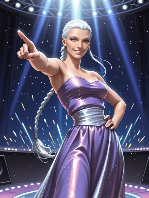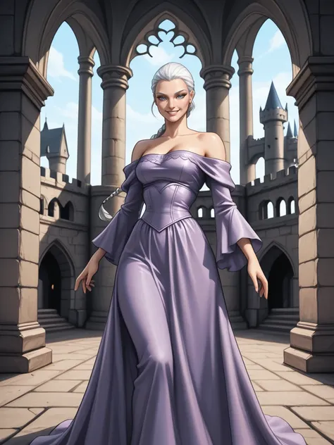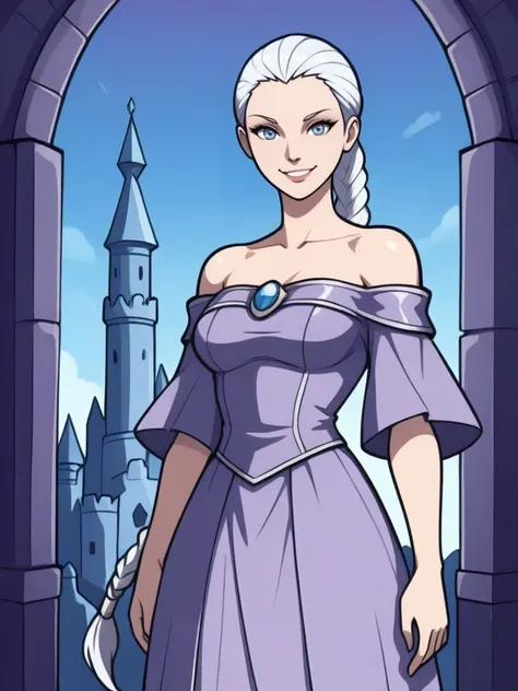 ariannaexaltedlong hair, white hair, braid, blue eyespurple dress, bare shouldersforehead mark, anima