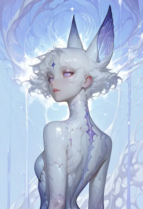 OCAlCt, 1girl, short hair, white hair, colored skin, animal ears, alien, purple eyes, facial mark