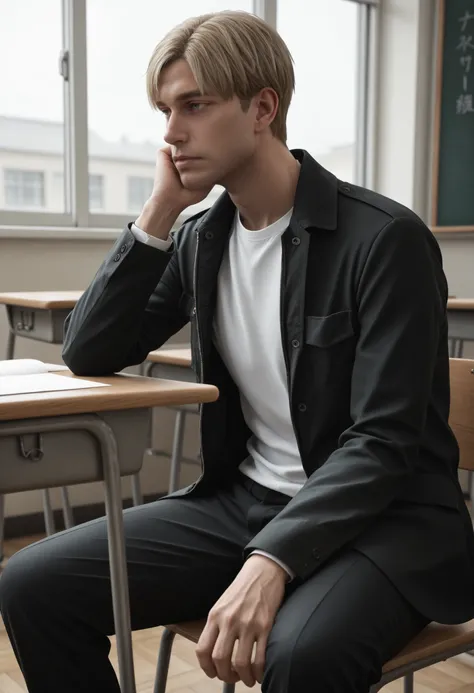 SH2RJames, 1boy, male focus, short hair, blonde hair, green eyes