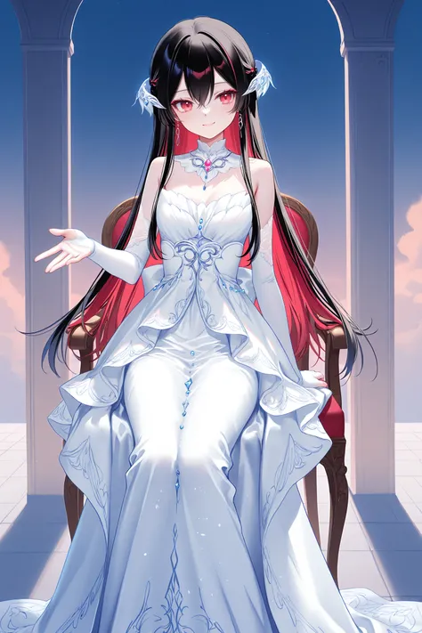 ren(def), 1girl, long hair, black hair, multicolored hair, red eyes, hair between eyes, red hair, colored inner hair,black serafuku, detached sleeves, red neckerchief,coat,thighhighs,