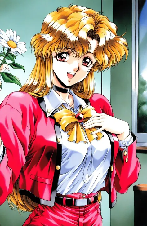 Ito_Ryoko(Nonomura_Hospital_PC98),1girl, solo, blonde hair, long hair, brown eyes, black choker, large breasts,