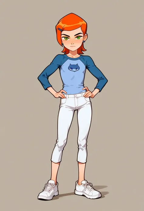 gwen tennyson (/Ben10)/,(ultra HD quality details), bright orange hair, short hair, (green eyes)