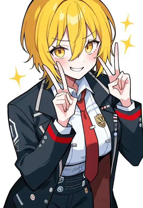 short hair, blonde hair, yellow eyes