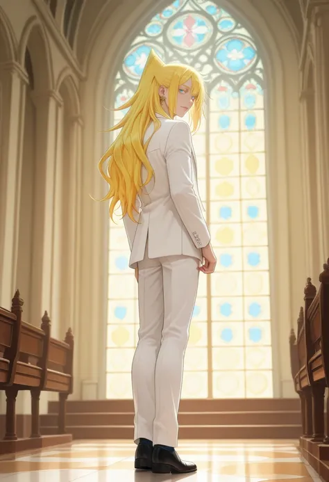 MIMTW4kas4, blonde hair, 1boy, male focus, blue eyes, long hair, colored eyelashes, high ponytail