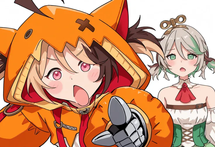 Cec1l1a, green eyes, winding key hair ornament, doll joints, grey hair, colored inner hair, streaked hair, short hair, side braidCec1l1aDef, green eyes, winding key hair ornament, doll joints, grey hair, colored inner hair, streaked hair, short hair, side braid, detached collar, red ascot, strapless dress, detached sleeves, chest belt, green corset, gears, green skirt, bloomers, white shorts under skirt, gold trimCec1l1aNwYrs, green eyes, winding key hair ornament, doll joints, grey hair, streaked hair, short hair, double bun, hair flower, hair ribbon, red ribbon, multicolored kimono, frilled collar, print kimono, frills, white shawl, checkered kimono, green kimono, red sash, white gloves, see-through gloves, long kimono