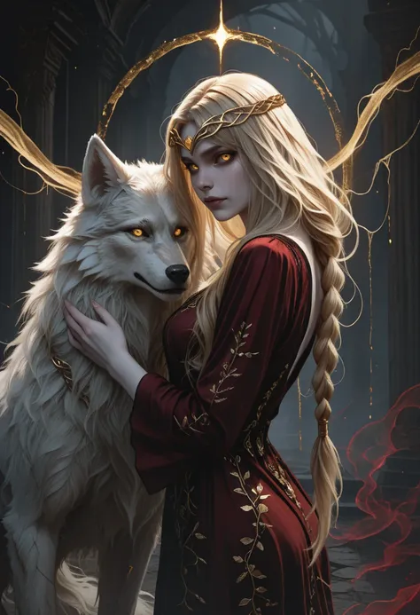 ERMarika, 1girl, long hair, single braid, blonde hair, circlet, yellow eyes