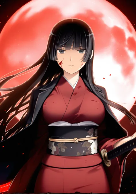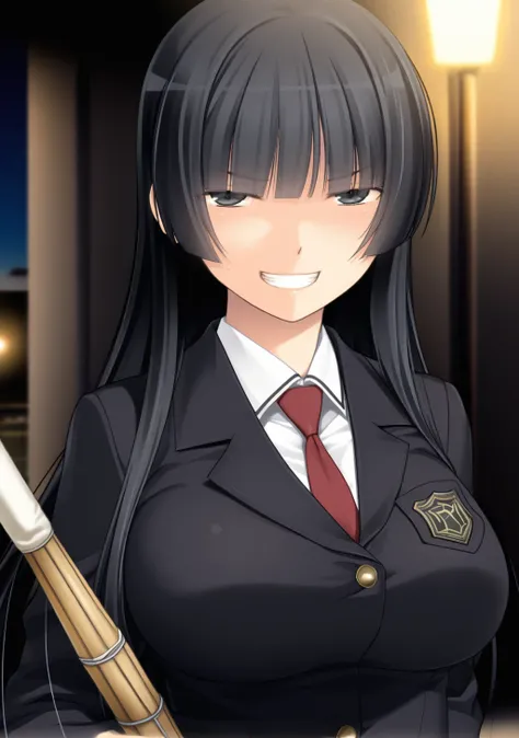 shizukublack hair, long hair,blunt bangs,black eyesschool uniform,red necktie,blazer,skirt,black pantyhose