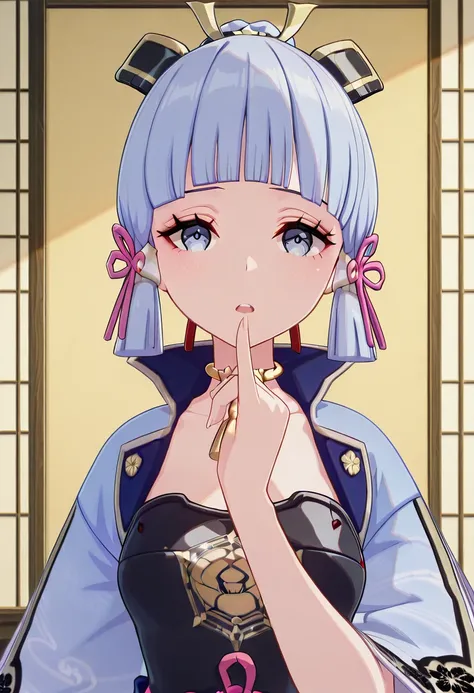 <lora:gotoubunnohanayome-vol11-illustriousxl-lora-nochekaiser:1>, gotoubunnohanayome vol11, solo, looking at viewer, blush, open mouth, upper body, parted lips, teeth, hand up, upper teeth only, straight-on, pinky to mouth, pinky out,