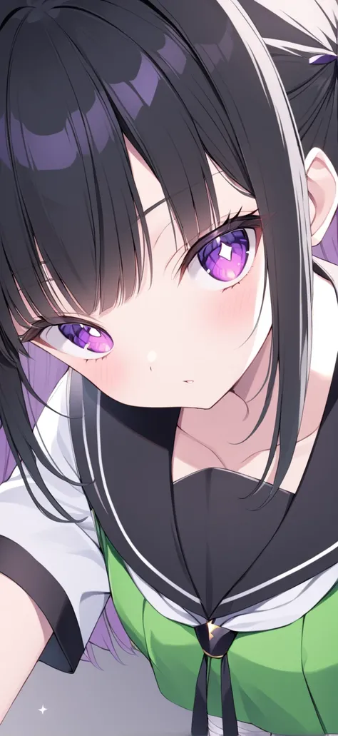 k4fu, diamond hair ornament, hair over shoulder, low twintails, multicolored eyes, white pupils, bright pupilswhite jacket, hooded jacket, hood down, long sleeves, black shirt, black dress, turtleneck, white pantyhose