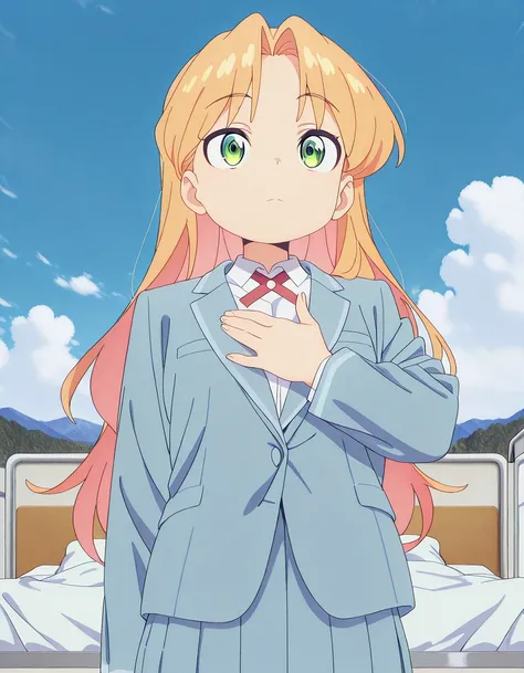 <lora:lupang-hinirang-illustriousxl-lora-nochekaiser:1>, lupang hinirang, solo, looking up, expressionless, closed mouth, hand up, hand on own chest, clouds, blue sky, outdoors, cowboy shot<lora:lupang-hinirang-illustriousxl-lora-nochekaiser:1>, lupang hinirang, solo, looking up, expressionless, closed mouth, hand up, hand on own chest, clouds, blue sky, outdoors, upper body